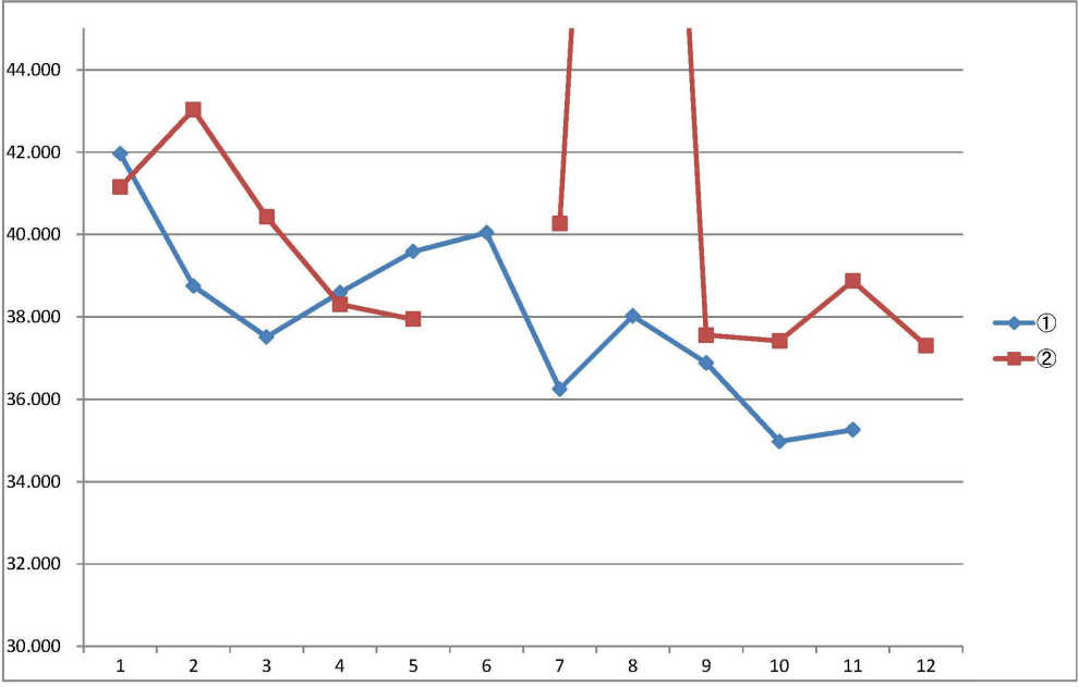 グラフを見ると、基本右肩下がり、まだコースに慣れていないこともあって、最初からペースは上がらない。