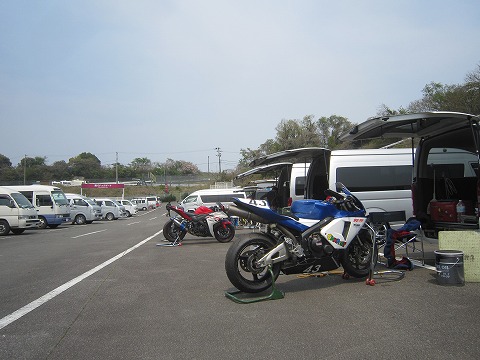 インターバルの間に、P-LAPのタイムを記録、ガソリンを入れ直して10リットル、フロントタイヤのエアーをちょい足しして、1本目の走行を振り返りつつ、2本目の走行を待ちます。