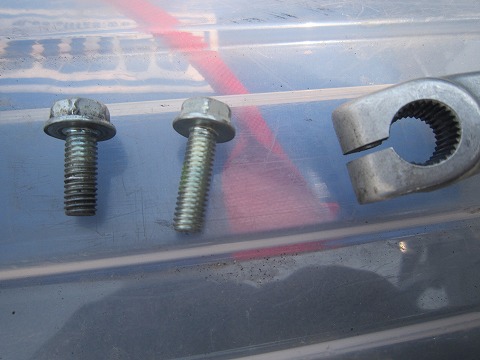原因はこれでした。 短いボルトの方が4山ほどネジが短い。