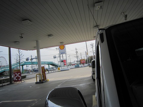鈴鹿サーキットを出たら、サーキット前の交差点にあるシェルのスタンドでハイエースに給油。