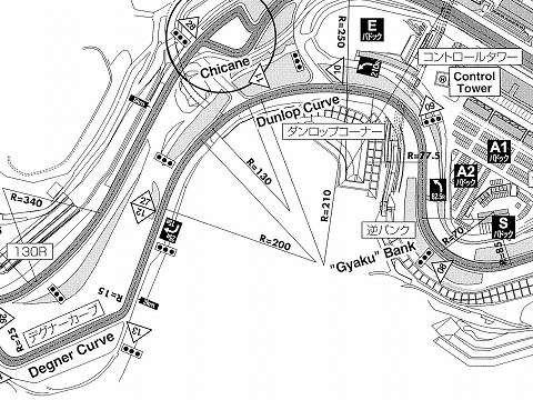 で、やっぱり1コーナーと130Rの進入はスピード殺し過ぎちゃてるね。