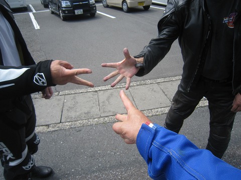 13:33 いきなり 『もう、いきなりジャンケンなんだから!』 伊豆スカイラインをノンストップで走り、県道20号線沿いにある十国峠レストハウスまで戻ってきました。 別に大して水分補給をしたいわけじゃないんだけど、弱い人がどうしてもジャンケンをしたいらしい。 (どうしてもジュースをご馳走したいらしい) で、今回も弱い人の負け。(爆) |