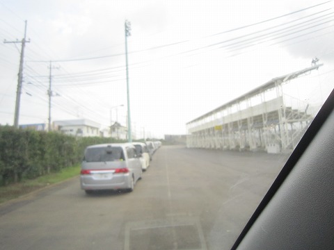 6:03 陣取る インフィールドに入ると、ピット側は既にほぼ一杯。 自分は左手の”S字裏”にハイエースを陣取ることにします。 |