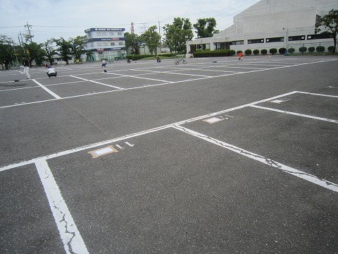 6:23 P2に駐車スペースを確保 場所取りの用紙をもらったら、速攻で場所取り。 どうにか地下トンネルに近いP2駐車場の端っこの方を確保することができました。 (^_-) キープした場所の一番右端の場所が斜めっていてクルマ1台駐めるには狭いので、枠が書いてなくて空きスペースになっています。 明日、雨が降ったらその場所にテントを建てられますね。 駐車スペースが確保できたところで、パドックに戻って練習走行の準備をちゃっちゃか始めましょう。 |