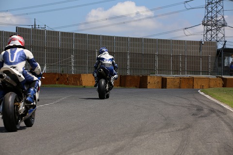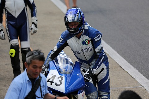 9:55 コースイン 9時55分になり予選が開始になりました。 ピットロード端でオフィシャルが前のバイクとスペースができる様、3秒間隔くらいで2台づつコースインさせて行きます。 自分は、4番手くらいでコースイン。 最初の5分間は未計測と言うことで、コースインして最初の5周くらいは実質慣熟走行します。 前との間隔が詰まりすぎないよう気を付けながら、ペースを上げていくことにします。 |