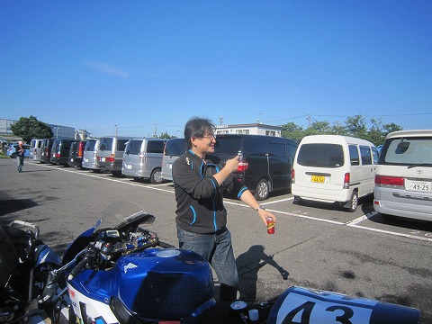 7:17 MAOHさん登場 バイクの準備をしていると、今日もう一人のヘルパーをお願いしたMAOHさんが到着。 いつもはバイクで駆けつけてくれますが、今回は梅雨時と言うこともあって駐車場をキープ、クルマで駆けつけてくれました。。 『MAOHさん、今回もよろしくお願いします!』 今回も基本この3人でレースにのぞみます。 |