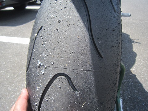 10:32 走行後のタイヤ 走行終了後のタイヤ。 全然減ってないみたい! ( ̄。 ̄;) 予選前半の5分間が未計測だったのでフルアタックではありませんでした。 5分経過してアタックを開始するも、徐々にペースを上げていったら11周目に最終入口で黄旗でタイムアタックを中断、そのまま予選時間が終了したので、自分としてアタックしたのは5周程度だったので、タイヤも減りませんよね。 タイヤ的に全然余裕なのがわかって、気持ち的にも余裕が出たので、決勝はガンガン行きたいと思います! |