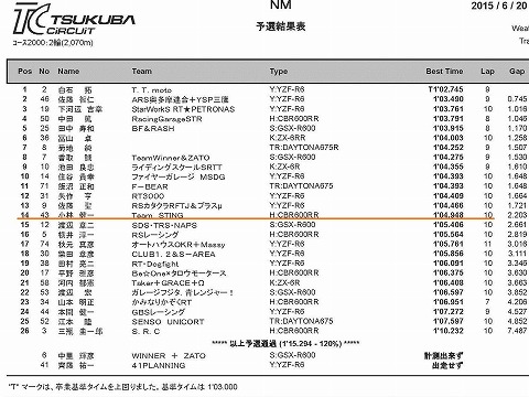| 2015年6月20日(土) 筑波ツーリスト・トロフィin June(予選) | |||