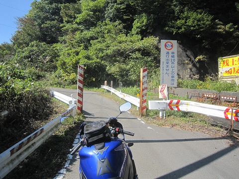 12:44 県道518号 宮ヶ瀬湖のやまびこ大橋からは、県道64号伊勢原津久井線を北上し、道志道に突き当たったら左折し、一瞬道志道を西走し、すぐに右折。 県道518号藤野津久井線に入り牧馬峠までやってきました。 県道518号線は交通量も少なく、リッターバイクで走るにはコーナーは少々タイトですが、軽快に走ることができます。 ただし、道志道から牧馬峠までの区間は、途中に採石場などがあり、路面に砂が浮いている箇所もあるので、やり過ぎには注意が必要です。 県道518号線の牧馬峠は道路の幅員が狭く、大型車が通れないため、入口にゲートが設けられています。 この区間、大型車の離合は出来ませんが、普通車同士であれば大抵の区間で離合できるので、バイクで走っていてもそれほどストレスはありません。 |