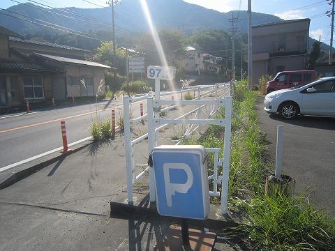 13:36 距離標97.2km 国道20号線に入り、大月ICを通過し、中央高速の富士吉田線の高架を越え、97.2kmの距離標のところに今日の目的地、そのお店はあります。 |