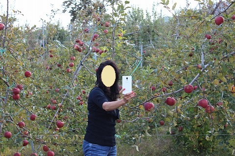 15:50 リンゴ畑で 蕎麦屋のあった有明山神社から安曇野の市街地を目指します。 途中、リンゴ畑を見つけると、 『ストーーーップ! 写真撮るから。』 タイ出身の嫁さんには、リンゴの木は珍しいらしい。 (横須賀に住んでいる自分も普段リンゴの木をお目にかかることはないけどね。) 早速、リンゴの木をバックに自撮りしてインスタグラムに投稿。 きっと、タイの友人に自慢しているんだろうな。(笑) |