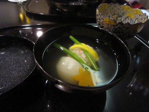 19:23 かに真丈 かぶら 2品目はお椀です。 お椀は、”かに真丈とかぶら”。 ここの料理の印象は出汁が美味しいですね。 このお椀も出汁が美味しい。 汁に柚子の香りが立って、これぞ和食って感じです。 |