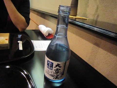 19:39 ビールの次は ビールを飲み終えたところで、奥さんはグラスのワインを飲むと言うので、自分は日本酒。 地元長野県安曇野の大雪渓の生貯蔵酒。 スッキリした味でひじょうに飲みやすい。 |