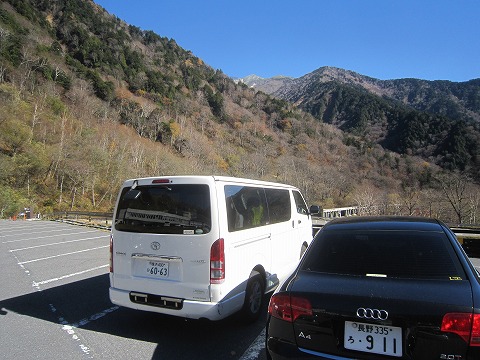 9:20 扇沢へ向かう 長野県の大町市から黒部ダムに行くのには、黒部ダムを建設するときに掘られた関電トンネルを通ってトロリーバスを使って行くルートしかありません。 このトロリーバスの発着場は扇沢にあります。 くろよんロイヤルホテルから黒部ダムへのトロリーバスの発車基地となる扇沢までは、9kmほどの道のりです。 GPSレコーダーのログを見ると、くろよんロイヤルホテルのある場所の標高はおおよそ900m、扇沢の標高はおおよそ1400mとクルマは徐々に標高を上げていきます。 標高が上がるにしたがい、周囲の木の葉も徐々に紅葉から落葉へと変わっていきます。 |