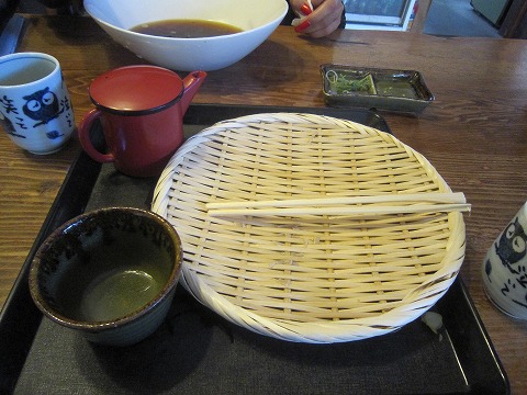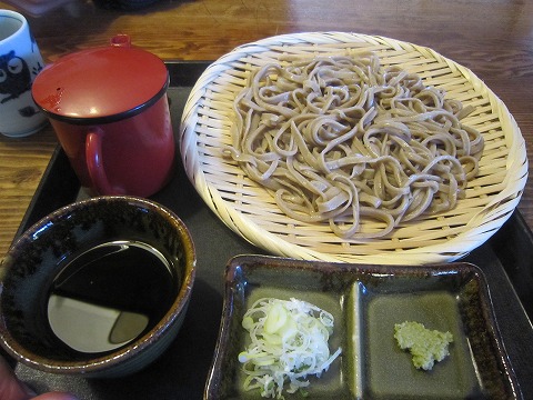 13:02 昼食 国道148号線を大町市の市街地に向け南下。 木崎湖をすぎて、県道325号線との交差点近くにそば屋の幟(のぼり)を発見。 昨日の昼も蕎麦を食べましたが、”鴨せいろ”を食べ損ねた嫁さんは、珍しく連チャンでそば屋を所望。 『たぶん、鴨せいろは置いてないとおもうよ。』と自分が言うと、お腹が空いて少々気短になっている嫁さんは 『入ってみなきゃ、わからないじゃん!』 と言うことで、ご入店と相成りました。 自分は蕎麦好きなので、二日連チャンでもぜんぜん構わないですけどね。 |