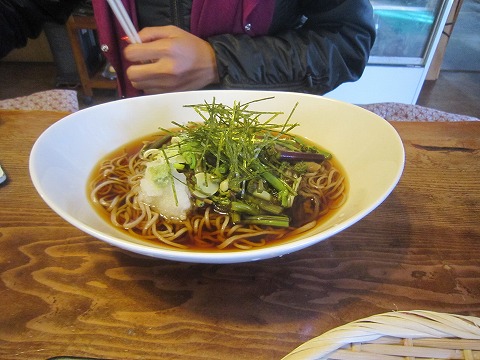 13:30 やっぱりありません 嫁さんは・・・・。 やっぱりありませんでした、鴨せいろ。( ̄。 ̄;) 天ぷらは”油が多い→太る”と思っているので基本食べません。 あとお品書きにあるネタものは、ニシン蕎麦(珍しいですね)と山菜蕎麦くらいだったので、山菜蕎麦を所望。 『なんで鴨せいろ無いの?』 と嫁さんに聞かれても、自分にはわかりませんが、たぶん鴨肉が高いからかな? |