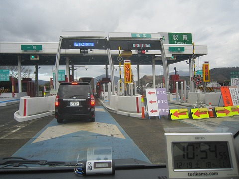 10:54 敦賀インターに到着 北陸自動車道に入り北上すること40分ほど、敦賀インターチェンジに到着しました。 ここで北陸自動車道を下り、国道8号線を北上します。 ここから目的地までは、40km強の距離、一時間ほどで到着できるでしょう。 高速を降りたら、今日訪問する予定のお店に電話して、これから訪問するので事前に席を取っておいてもらうことにします。 前日の昨日、一応予約をしようと電話をしたのですが、事前の電話予約は既にいっぱい。 当日、一時間くらい前に席取りの電話をして欲しいとのことでした。 (事前に電話をしておいてよかったです。) |