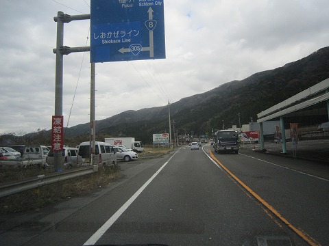 11:10 国道305号線へ 国道8号線を北上すること15km、国道305号線との分岐までやってきました。 この先を左折して国道305号線に入り、敦賀湾に沿って北上を続けます。 |