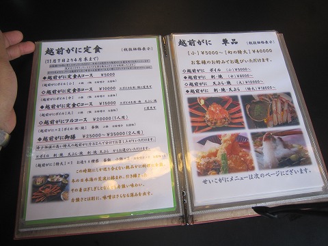 11:52 店頭販売 店頭では、お土産用・配送用のカニが売られています。 流石、ブランド越前ガニ、高いね。(^_^;) |
