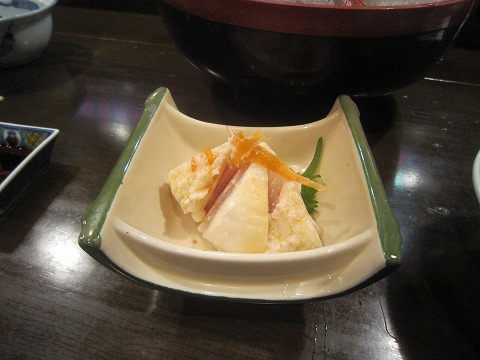 19:42 かぶらずし 続いて、かぶらずし。 北陸地方の味覚らしい。 かぶにブリなどの魚介類を挟んで漬け込んだ”なれ寿し”の一種。 自分は知りませんでしたが、清水さんが『北陸の味覚だから、食べてみて!』と注文してくれました。 ちなみに、清水さんはあまり得意じゃないらしい。(笑) 酸味が利いていてさっぱりして美味しい。 本格的なもの、はもっと漬け込みが進んで乳酸発酵ぽくなっていると予想されるんですが、これは観光客用(?)か漬け込みが浅く食べやすく仕上げてある感じでした。 お酒に合います。 (^o^) |