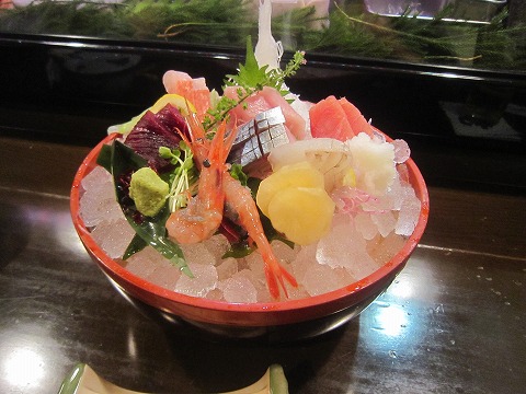 19:42 お造り そして、お店のお薦め、お造りの盛り合わせ。 甘エビ、〆(?)サバ、旬のブリ、金目、タイ、マグロに真っ赤なのはクジラ?。 細かいことは忘れたけれど、どれも新鮮で美味しかったですよ。 |
