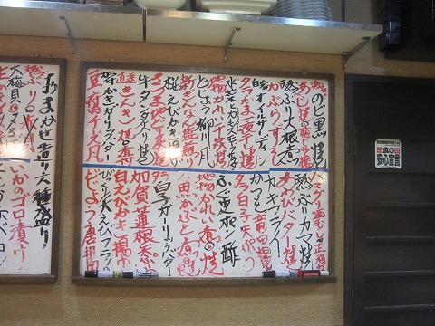 目の前にあるホワイトボードを見ると、石川県の味覚が楽しめそう。 お品書きからではなく、旬のものが書かれた壁のホワイトボードから中心に注文。 |