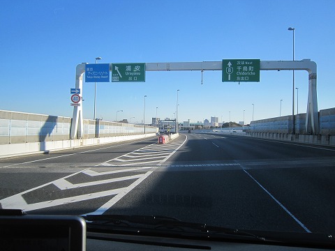 8:55 幕張インターから 千鳥町で一般道に下りた後は国道357号線を東進、幕張までやってきました。 ここで、もう一度高速、京葉道路乗り直します。 このまま下道でK2Yまで行っても間に合う時間なんですが、今日初参加のメンバーがいて、千葉北インターの出口で待ち合わせしてるので、千葉北インターに行くため、ここから高速に乗ります。 |