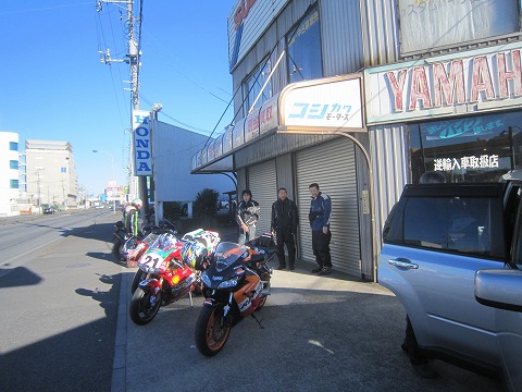 9:23 K2Yに到着 千葉北インターから国道16号線を北上。 八千代市にあるK2Yに到着しました。 他の参加メンバーは既に到着済。 『明けましておめでとうございます!』 さっさとハイエースからR1を降ろして、ツーリングの準備をしましょう。 |