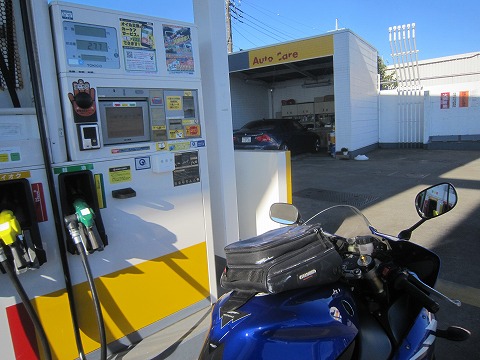 9:43 給油と確認 ハイエースからR1を下ろし、向かいのshellのスタンドに行って、ガソリンを満タン給油。 とりあえず、バイクのウェアー着てお店を出て、ちょっと走って中央分離帯の切れ目でUターン。 shellのスタンドにバイクを入れるんだけど、そのときに今着ているウェアーで今日は十分か確認する。 寒かったら、下にもう一枚重ね着するんだけど、今年は暖かいね。 これで、十分だ。 |