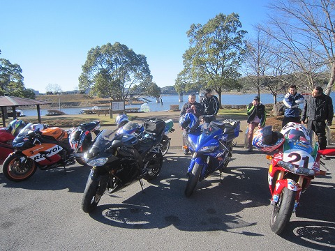 10:55 高滝湖で休憩 K2Yを出発して1時間、高滝湖に到着しました。 ここで、ちょっと休憩。 しかし、今年の元旦は暖かい。 例年であれば、日陰の濡れている部分は凍結していることがあるので、ビビリながら用心して走るんですが、今年はまずその心配はありませんね。 |