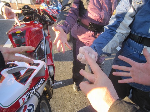 16:43 K2Yに帰着 千葉市内のセブンイレブンから、アイスエイジさん、掛本君の3台で暗くなる前にK2Yまで戻ってきました。 しかし、今年の元旦ツーリングは暖かかった。 たぶん、今までで一番暖かかったんじゃないかな。 肩の状態はまだまだ万全じゃありませんが、乗る度に良くなってきてるのがわかりました。 今回フロントに履いたユーズドのPIRELLIのディアブロ・スーパーコルサですが、特に主張する様なクセは無くて乗りやすいです。 サーキットで使う時のエアー圧は200KPa以下ですが、今回は街乗りと言うことで250KPa入れて走ってみました。 固すぎることもなく、快適でしたね。 |