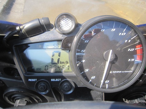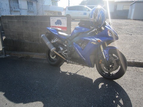 9:25 出発 ガレージからYZF-R1を引っ張り出し、エンジンをかけて暖機をしている間タイヤのエアー圧をチェック。 元旦ツーリングから1ヶ月ちょっとしか経っていないので、エアーを追加するほどではありませんでした。 走り初めの距離は、メータパネルが反射して見難いですが ( ̄。 ̄;) 38,461km です。 『それでは出発しましょう。』 |