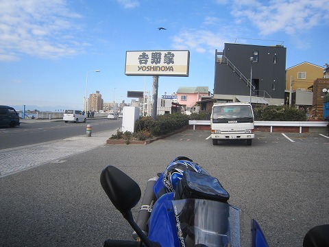 10:07 遅い朝食 国道134号線で江ノ島近くまで来たところで吉野家に寄って遅い朝食を食べます。 断じてブランチではありません! 朝食です。 なぜって、この後ちゃんと昼食を食べるからです。(笑) 朝食は、牛丼の並、玉子、みそ汁でワンコイン。 朝でも吉野家に寄ると、”朝定”とかじゃなく、自分はやっぱり”牛丼”を頼んじゃう。 頭の中に、”吉野家=牛丼”が刷り込まれているようだ。 |