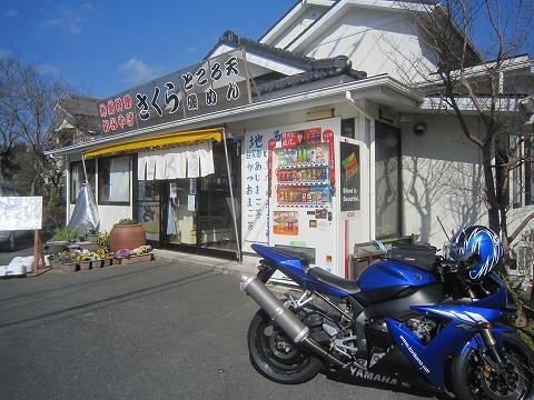 13:26 さくらに到着 堂ヶ島を通過し、そのまま南下を続け松崎町の市街地に入りました。 街はずれの長八美術館の向かいにある、本日の目的地食事処の”さくら”に到着しました。 1時を過ぎてお腹が空きました。 それでは、昼食を食べることにしましょう。 |