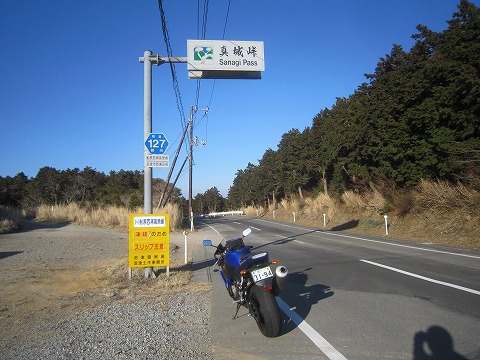 15:31 真城峠(さなぎとうげ) 戸田から県道18号線を東進。 急激に標高を上げると、途中県道127号線との三差路に差しかかります。 その三差路を左折し、県道127号船原西浦高原線(ふなはらにしうらこうげんせん)に入り、今度は北上し真城峠までやってきました。 真城峠の標高は500m弱。 今日は日中日差しもあったことから、寒くはありませんね。 |