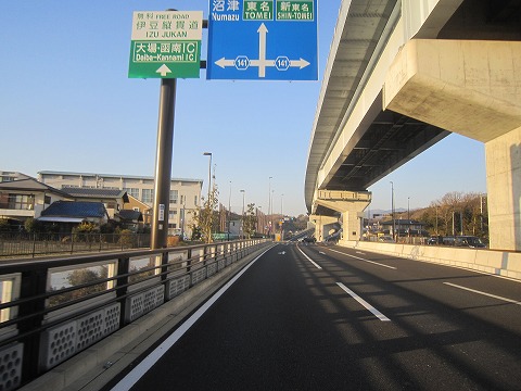 16:29 伊豆縦貫道 ローソンで休憩した後、国道136号線に出て北上、函南の市街地にある大場・函南インターチェンジから伊豆縦貫道に上がり国道1号線方面を目指します。 伊豆縦貫道は今のところ無料開放中です。 |