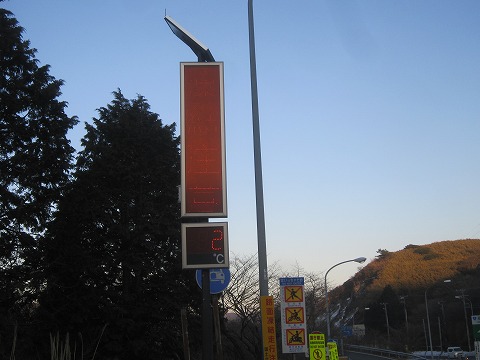 16:52 箱根峠は 三島からは国道1号線を上り箱根峠までやってきました。 箱根峠が近づくにつれ標高は上がり、気温は下がり、自分が使っているレーシンググローブでは保温機能は無いので指先が冷たくなってきました。 そして、箱根峠に到着すると、道路脇の電気式の警告看板の温度計は ”2℃”。 (>_<) 寒い訳だ。 早いところ山を下りましょう! |