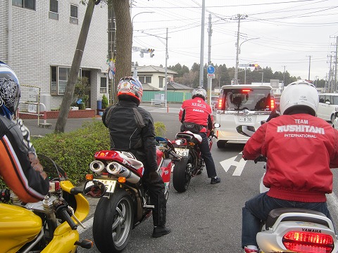 9:53 1台増えた K2Yを出発した後、千葉市内の裏道の市道(?)を通って、千葉東金道路の大宮インターを越え県道20号千葉大網線(通称大網街道)との交差点までやってきました。 『おっ! いつの間にかドカの998が増えている。』 いつもの様に、のガソリンスタンドで合流したのは岩井さん。 今日は全部で6台体制でツーリングです。 あと、そうそう、書き忘れていましたが、今日の行き先は寒さ明け1発目のツーリングとして、元旦ツーリングと一緒定番の”千葉県内”です。 |