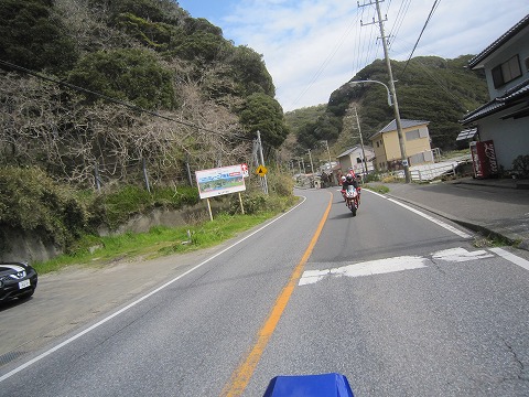 11:20 前は 前を走っているのはドカ1000DSのオッシーくん。 手首の疲労で途中から脱落(笑)したアイスエイジさんに変わって途中先頭を走っています。 鴨川の海沿いに出る手前の千葉県道82号天津小湊夷隅(あまつこみなといすみ)線の下りのタイトコーナーでは、2気筒のドカの特性を生かして、ヒラヒラと駆け下りて行きます。 自分のR1はアクセルのON・OFFであまり加・減速しないので、フロントブレーキを使いますがリズミカルに走れずに苦戦。 |