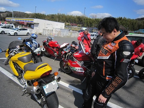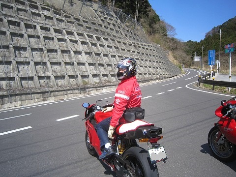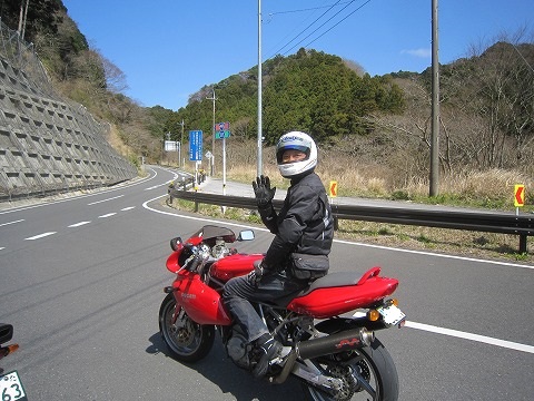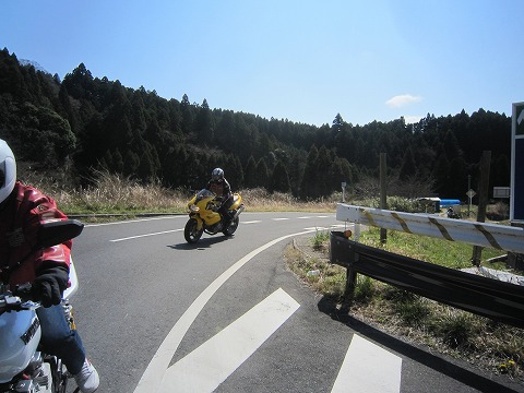 12:59 全員到着 今日初参加の黄色のドカさんも到着。 (すみません。名前を忘れました。(^_^;)) ちょっと離れたと言っても、デジカメの時間を見たら1分も待ってないんだよね。 みんな結構イイペースです。 それでは、みんなそろったところで、出発します。 |