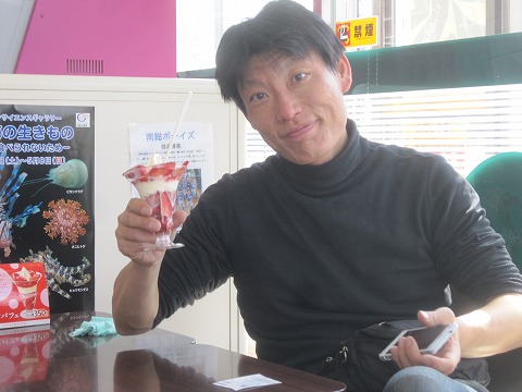 13:33 ご馳走になります。 負けたのはオッシーさん。 練乳いちごパフェ、税込み350円×6名=2,100円也。 『ご馳走様です!』 目が悲しそう。 (笑) |