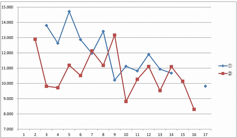 13:33 ラップタイム 走行後にGPSのラップタイムを確認。 スマホ上で使っているのは”LAP+android”と言うアプリ。 一番上のピンク色の数値は・・・・よくわかりませんが、走行中はベストラップのペースとの差が表示されているみたいです。 ベストラップのペースより遅ければ、ピンク色の数字で、速ければ水色の数字で表示されます。 今走っているのがベストより速いのか遅いのか一目でわかるので便利と言えば便利ですが、ピンク色の表示が出ているときは、「今、遅いよ〜。」と言われているのと同じですから、結構しんどいです。(笑) そして中段左の白い数字はベストタイムで、その右側の水色の文字が直近のラップタイムです。 そして、下段左はGPSから送られてくる時間で、その右側の”578.9”と言う数字は不明です。 |
