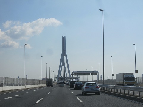 8:15 鶴見つばさ橋 横横の釜利谷JCTから首都高速湾岸線に接続。 いつもの横浜ベイブリッジで写真を撮るのを忘れ、気が付けば鶴見つばさ橋まで来ちゃいました。 ここで写真を1枚。 まだこの時間空模様ははっきりしないものの雲は少なめ、今日は晴れる予報です。 |