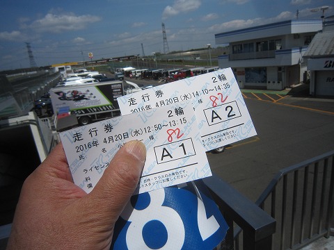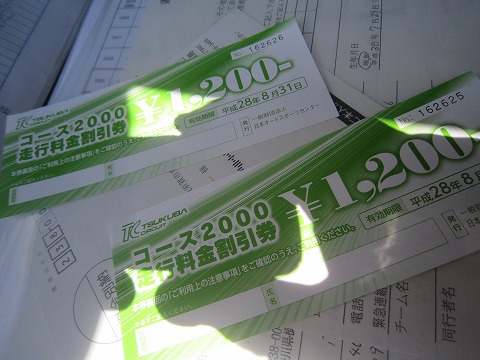 11:46 走行券を購入 ウォーマーをかけたら、コントロールタワー横に行って走行券を購入。 通常平日1走行\2,600のところ、ライセンス更新時にもらった下の写真の\1,200の割引券を2枚使って、(\2,600−\1,200)×2走行分=\2,800 とかなりお得感がありました。 そして、今まで腕章の保証料として\500の預かり金を取られていたけど、今回から要らなくなったみたい。 |