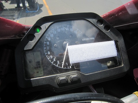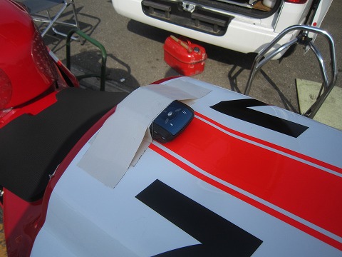 11:20 ラップタイマーを固定 GPSラップタイマーは、テールカウルにガムテで固定しておきます。 |
