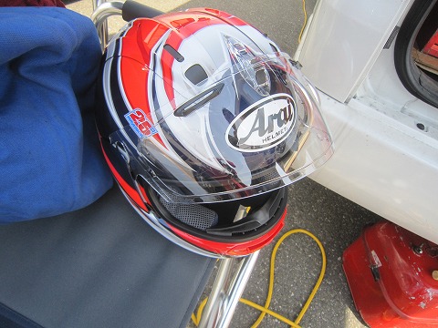 13:34 ヘルメット 先週新調したヘルメット。 以前使っていたRX7-Vは、内装がかなりきつめでした。 そのため、サーキット走行の様な30分ぐらいの短時間であれば大丈夫でしたが、ツーリングみたいに1日中、それも何回も被ったり脱いだりするのには不向きでした。 それに対し今回のRX7-Xは、内装は柔らかめ。 被ったり脱いだりするのは楽でしたし、長時間被っても大丈夫そうです。 ただ、普通に買うと最初に付いてくるシールドはクリアでサーキット走行にはちと格好悪い。 帰ったらスモークシールドを注文しよう。 |