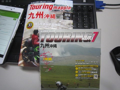 ツーリング・マップル 今回のツーリング前に、ツーリング・マップル(九州・沖縄版)を買って、持ってきました。 前回のは2006年だから10年前。 流石に10年前の地図じゃ高速とかかなり変わっているからね。 ツーリング・マップルは今年で30周年だそうで、自分のバイク歴より少し短いんだね。 自分が乗り始めた頃は、まだ無かった訳で、その頃はどうしてたんだろう。記憶が無い。(笑) あらためて思うけど、初めて訪れる土地へのツーリングにはツーリング・マップルが必需品だね。 |
