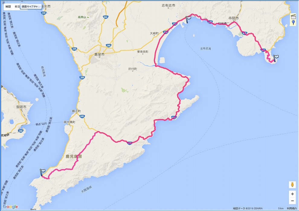 | 都井岬〜佐多伊座敷:133.9 km | |