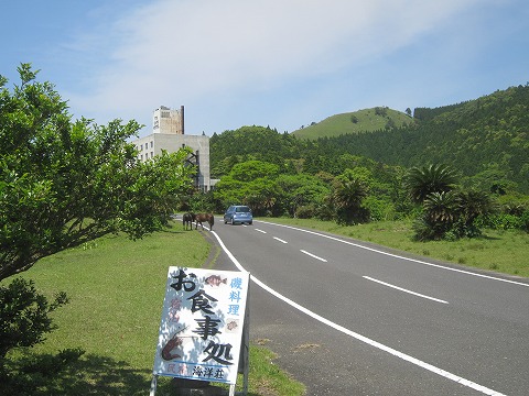 11:09 馬横断中 それでは、都井岬灯台も見たので、取って帰ります。 灯台の駐車場から下りてくると、やっぱり馬がいました。 ゆっくりと道を横断中。 クルマが避けていきます。 「お願いだから、ブラインドコーナーの立ち上がりで、のんびりと佇んでいるのだけはやめてね。(笑)」 否、安全運転で行きましょう! |