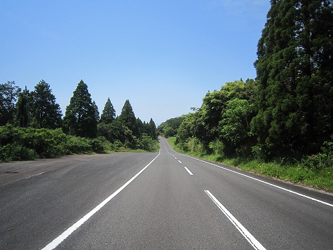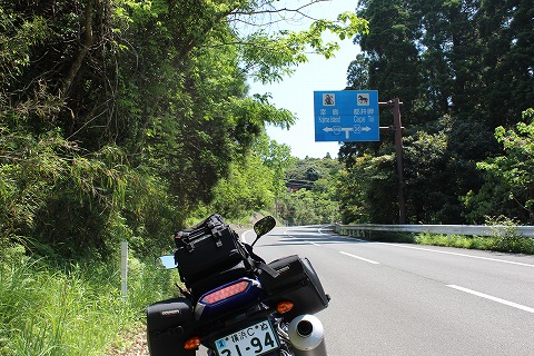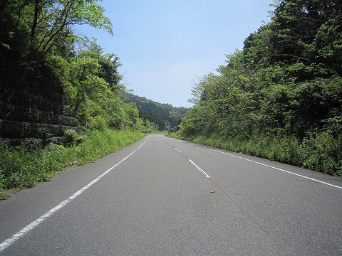 10:44 国道448号線から 国道220号線から串間の市街地で国道448号線に入り南西に進んでT字路に突き当たりました。 国道448号線は、センターラインのある片側1車線のアップダウンと緩いコーナーを直線でつないだ国道です。 交通量は少なく、快適にリッターバイクを走らせることができます。 この後、T字路を右折して、宮崎県道36号都井岬線に入り南下して都井岬を目指します。 |